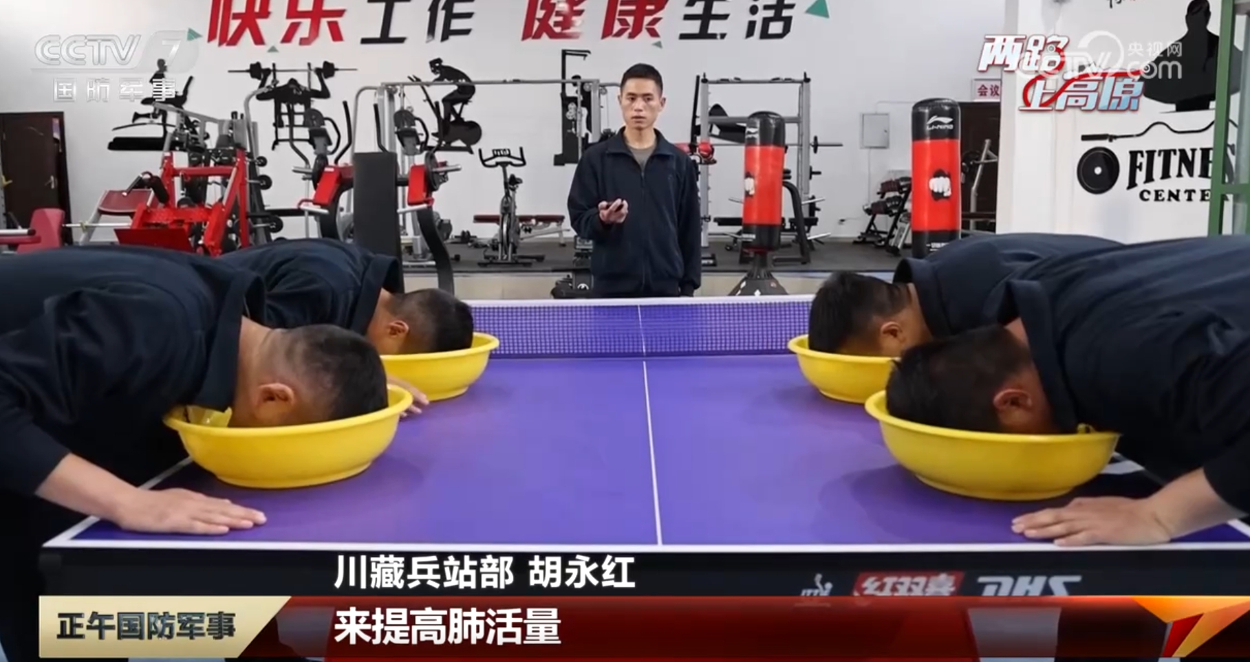 川藏兵站部胡永紅介紹:“首先大部分人初上高原,身體機(jī)能各方面,比如心臟這些都不適應(yīng)高原的氣候,提前做抗缺氧操有利于適應(yīng)高原的環(huán)境。一兩周之后,你可以慢慢適應(yīng)去訓(xùn)練,主要是心肺功能的訓(xùn)練,平時(shí)我們也會(huì)進(jìn)行水中憋氣來提高肺活量。日常我們也會(huì)注意改善自己的生活習(xí)慣,比如用腹式呼吸可以改善缺氧狀態(tài)。”