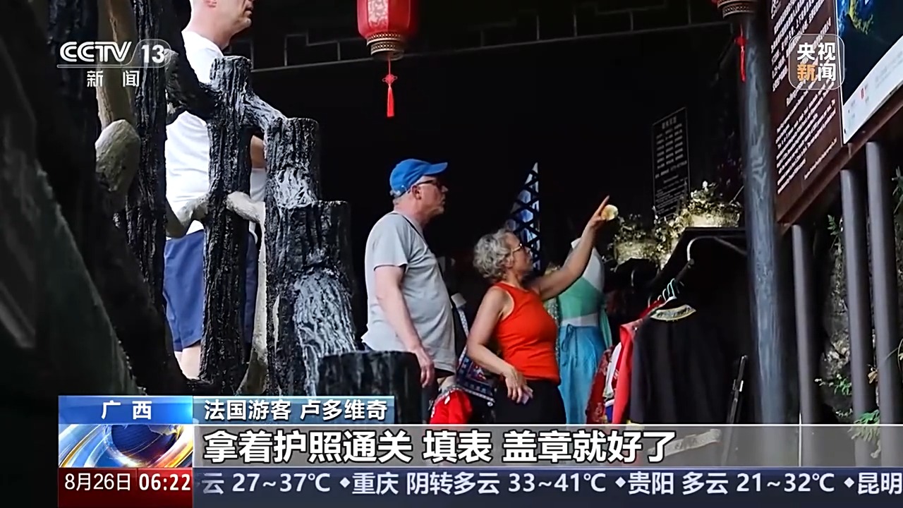 在廣西陽朔,法國游客盧多維奇告訴記者,自己和妻子一年前來中國的時候,簽證還是比較麻煩的,但是現(xiàn)在,情況完全不同了。