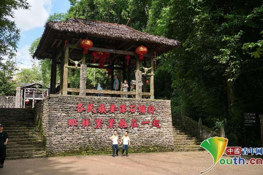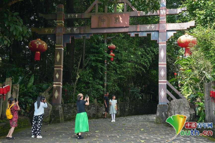 “中寨”寨門(mén)前,不少游客在打卡。中國(guó)青年網(wǎng)見(jiàn)習(xí)記者 曹偉 攝