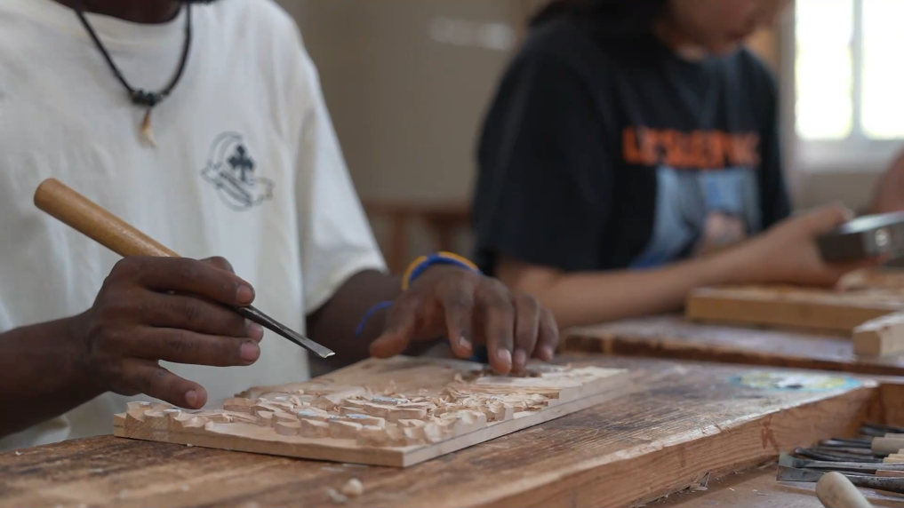 目前該學(xué)校共38名留學(xué)生,來自剛果(布)的許漫文就是其中之一。他告訴記者,來到中國后,他發(fā)現(xiàn)自己值得學(xué)習(xí)的東西有很多。他的夢想就是在畢業(yè)的時(shí)候成為一名木雕大師,將中國的木雕技藝和家鄉(xiāng)的文化融合起來。