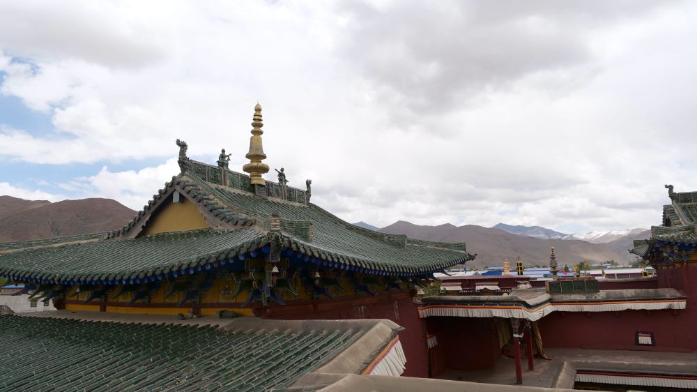這是夏魯寺重檐歇山式屋頂,呈現典型的漢藏融合風格(2024年5月8日攝)。新華社記者 邱星翔 攝