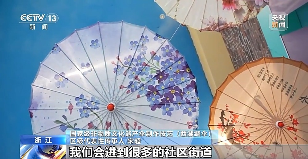 國(guó)家級(jí)非物質(zhì)文化遺產(chǎn)傘制作技藝(西湖綢傘)區(qū)級(jí)代表性傳承人 宋超:我們會(huì)進(jìn)到很多的社區(qū)街道,我們會(huì)進(jìn)到中小學(xué)的校園、博物館、非遺展示館等等這樣的地方,去進(jìn)行我們西湖綢傘技藝的展示展覽,包括各種各樣的體驗(yàn)活動(dòng),以此讓更多人了解和認(rèn)識(shí)到我們西湖綢傘這項(xiàng)技藝。