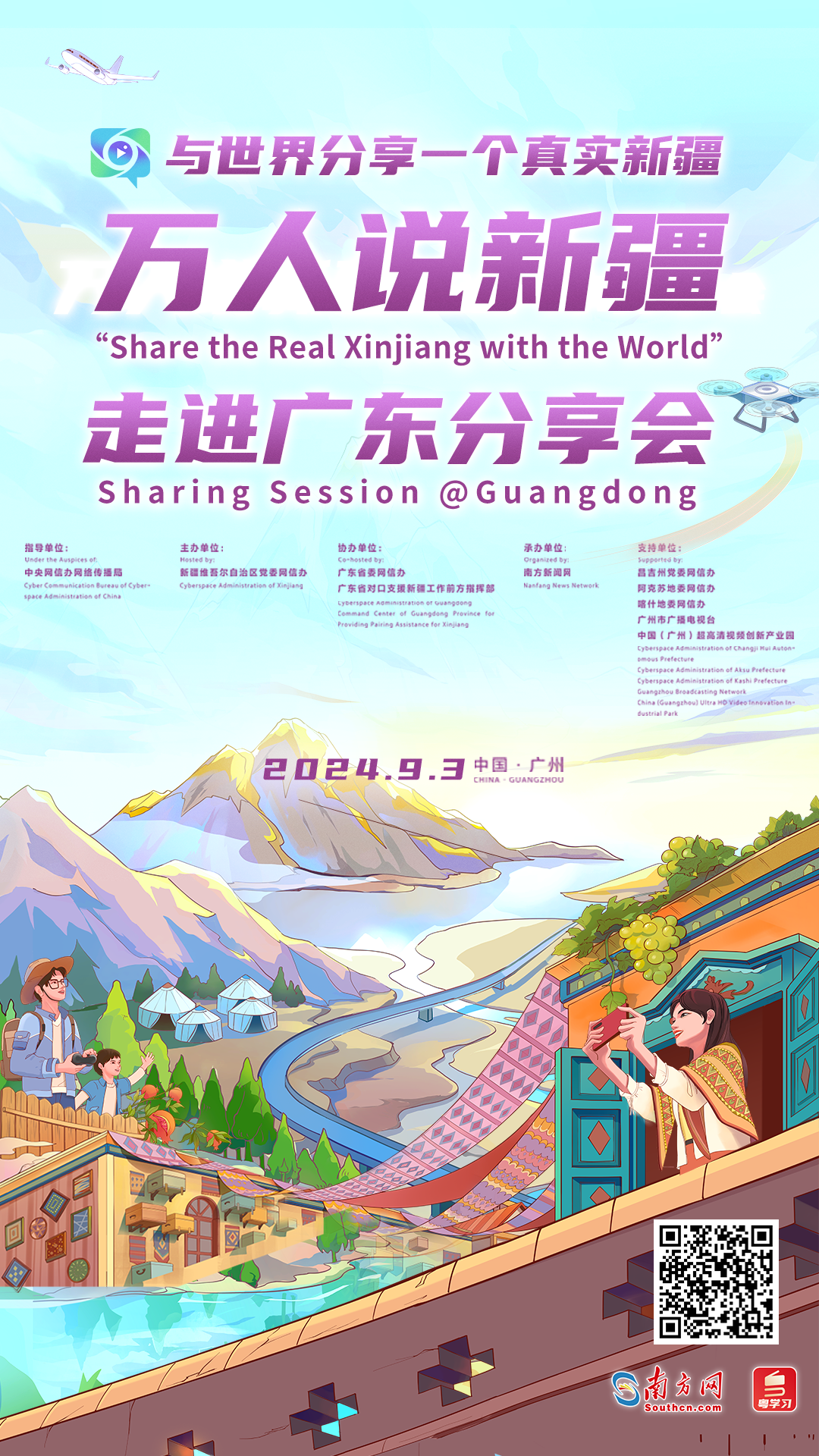 在交流互鑒中把新疆溫柔地說與全世界,在新粵兩地合作中感悟跨“粵”千里的援疆故事?!叭f人說新疆”走進(jìn)廣東分享會將于9月2日至3日在廣州舉行。此次活動由新疆維吾爾自治區(qū)黨委網(wǎng)信辦主辦,廣東省委網(wǎng)信辦、廣東省對口支援新疆工作前方指揮部協(xié)辦,南方新聞網(wǎng)承辦。分享會從國內(nèi)知名學(xué)者、外籍專家、海內(nèi)外博主、援疆干部、港澳青年等不同視角,講述有溫度、有情懷、接地氣的美好新疆故事。