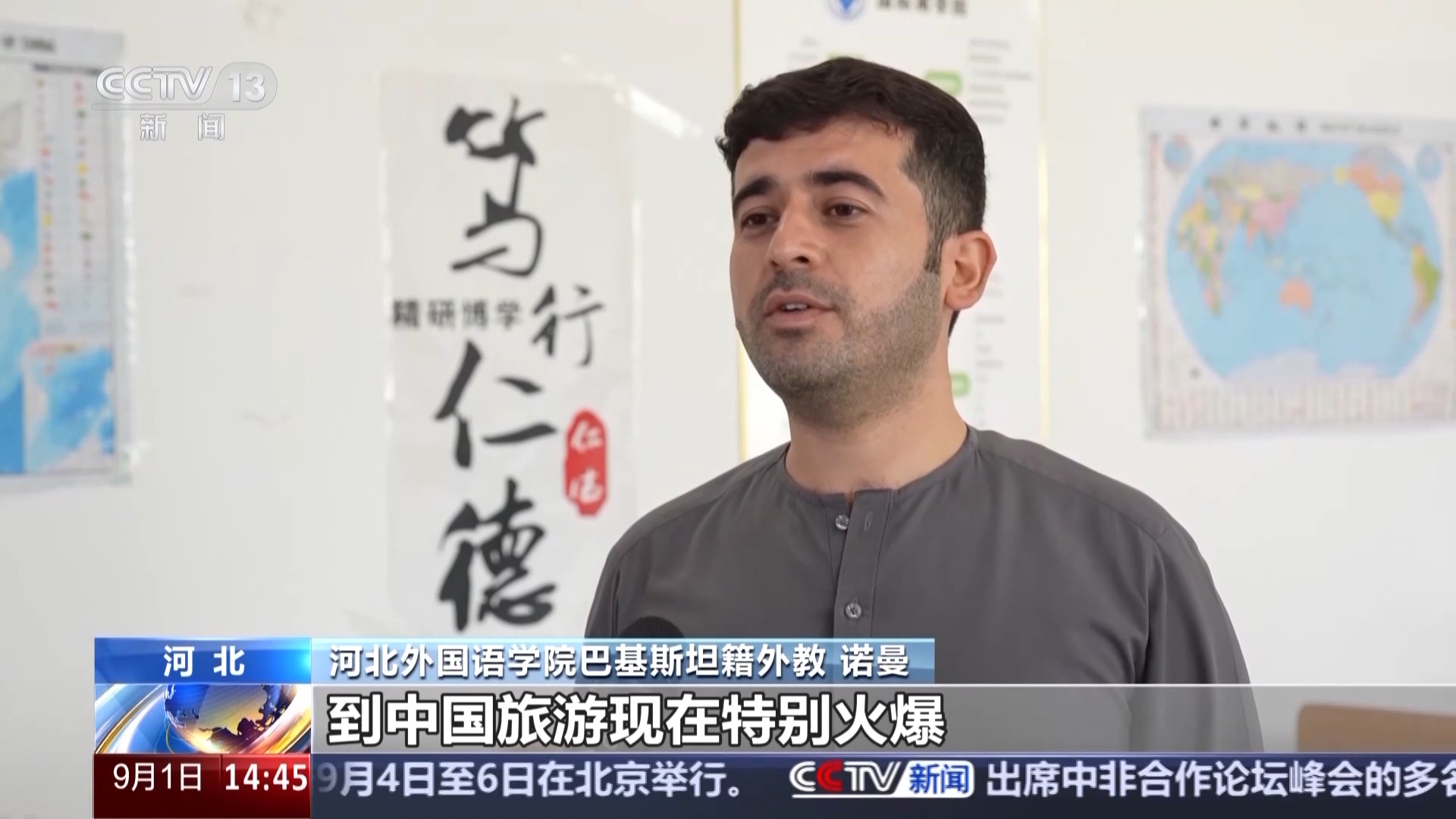 河北外國(guó)語學(xué)院巴基斯坦籍外教 諾曼:到中國(guó)旅游現(xiàn)在特別火爆,包括巴基斯坦在內(nèi),許多國(guó)家的人都來到中國(guó),愛上了中國(guó)的美食和文化,感受這里各種便捷舒適的生活方式,我身邊還有很多留學(xué)生朋友都很享受在這里的學(xué)習(xí)生活。