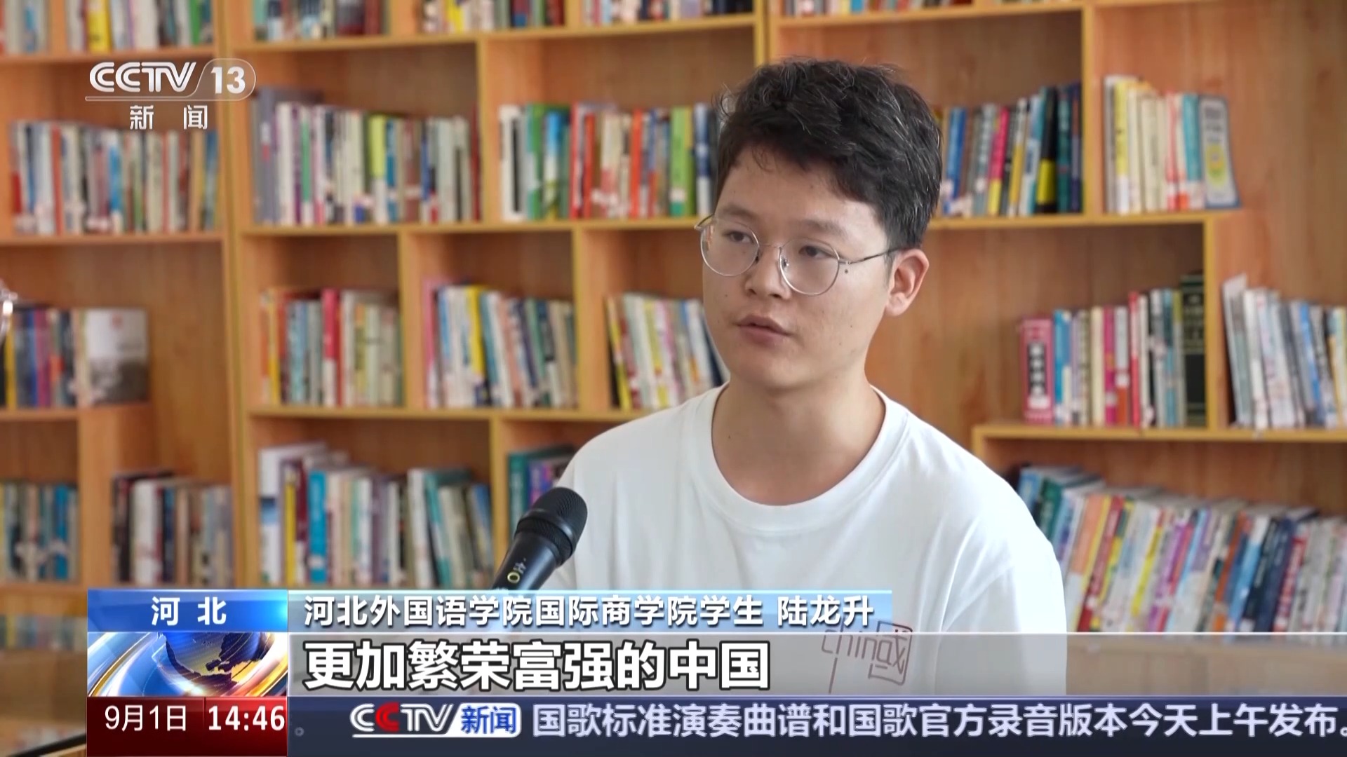 河北外國(guó)語學(xué)院國(guó)際商學(xué)院學(xué)生 陸龍升:我想通過自己的努力,以后可以讓更多的外國(guó)人看到真實(shí)的中國(guó),更加繁榮富強(qiáng)的中國(guó)。