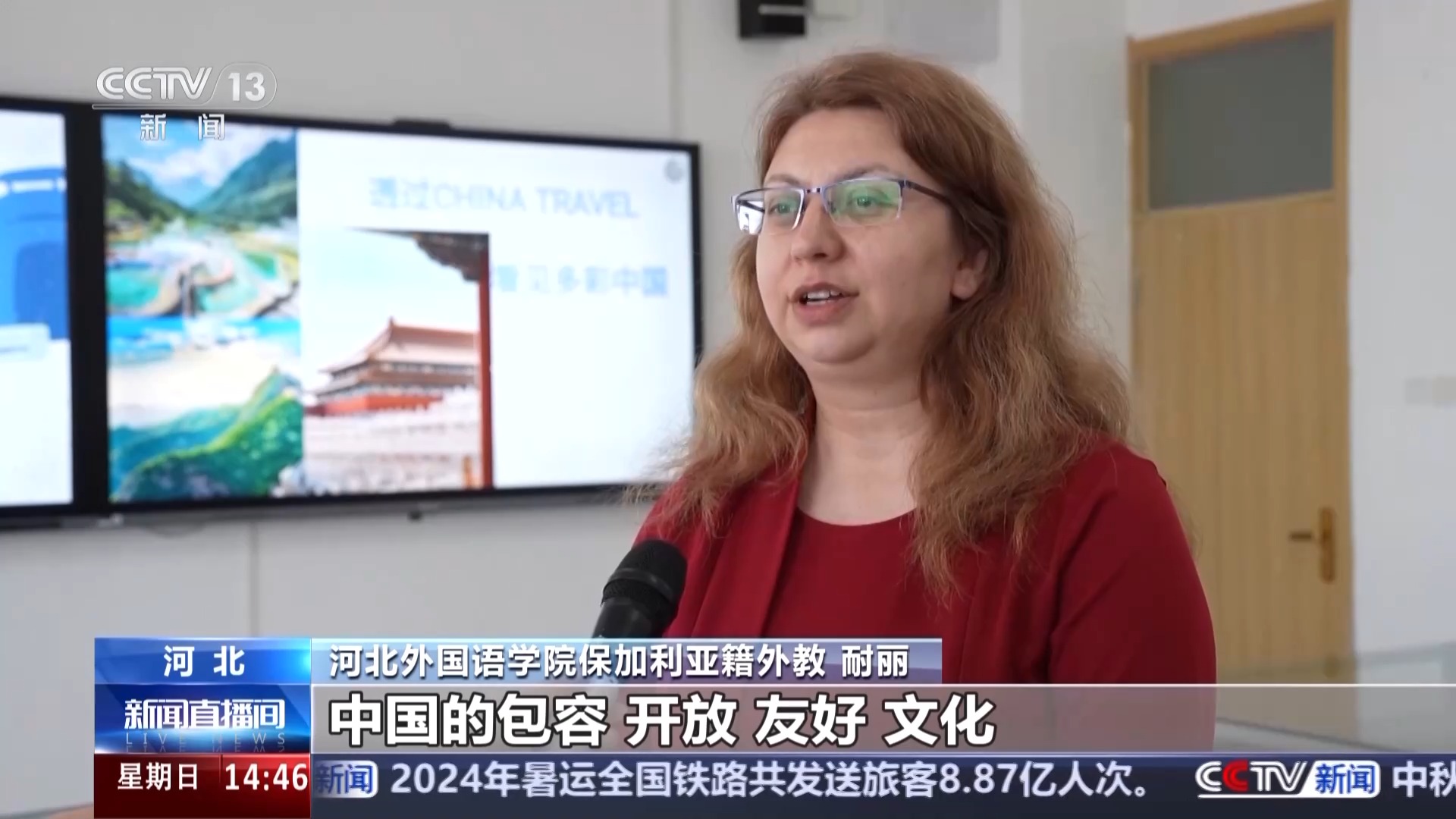 河北外國(guó)語學(xué)院保加利亞籍外教 耐麗:我是9年之前來到中國(guó)的,中國(guó)的包容、開放、友好、文化讓我非常喜歡在這里,我在這里也一直看著中國(guó)的變化和發(fā)展,我希望跟更多人分享我在這里感受到的多彩的中國(guó)。