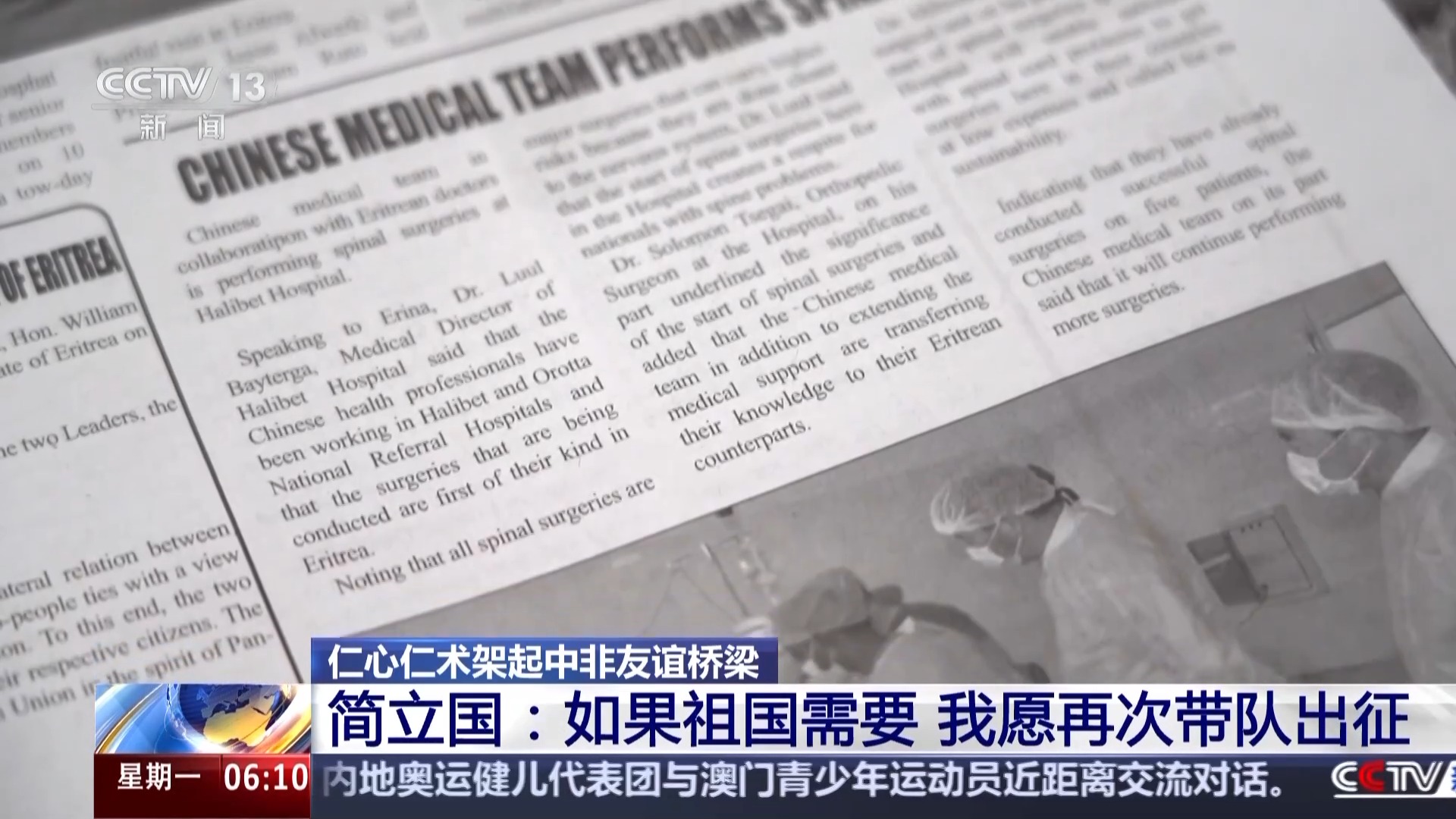 中國(guó)(河南)第15批援厄立特里亞醫(yī)療隊(duì)隊(duì)長(zhǎng) 簡(jiǎn)立國(guó):厄立特里亞沒(méi)有脊柱外科醫(yī)生,也沒(méi)有這方面的手術(shù)器械,我就快速地從國(guó)內(nèi)通過(guò)空運(yùn)骨科所必需的醫(yī)療器械,開(kāi)展了厄立特里亞的第一例脊柱外科手術(shù),手術(shù)做得非常成功。