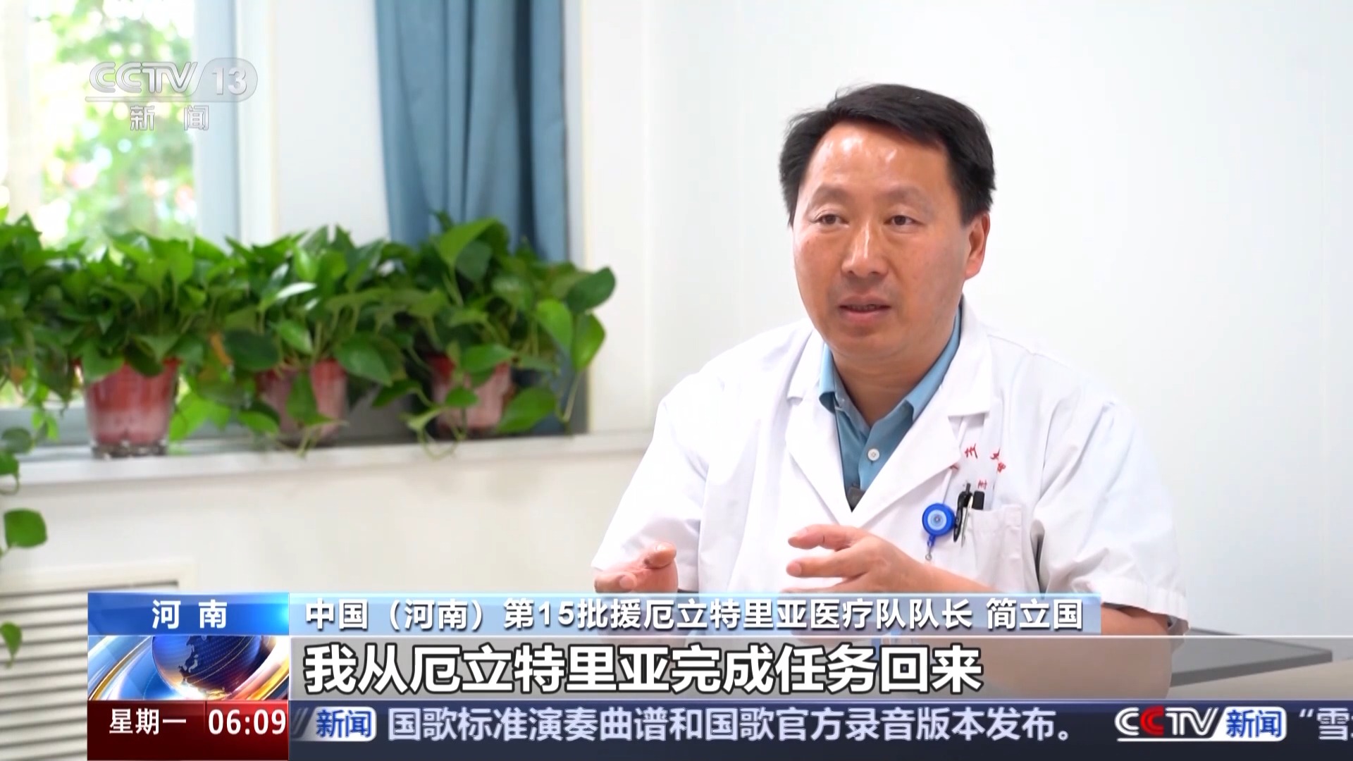 中國(guó)(河南)第15批援厄立特里亞醫(yī)療隊(duì)隊(duì)長(zhǎng) 簡(jiǎn)立國(guó):手術(shù)非常成功,這個(gè)時(shí)候,我還在援厄立特里亞沒(méi)有回來(lái),她一直非要在我們醫(yī)院等著我回來(lái),我完成任務(wù)回來(lái)見(jiàn)她的時(shí)候,她就緊緊地抱著我流眼淚。當(dāng)時(shí)我也特別感動(dòng)。