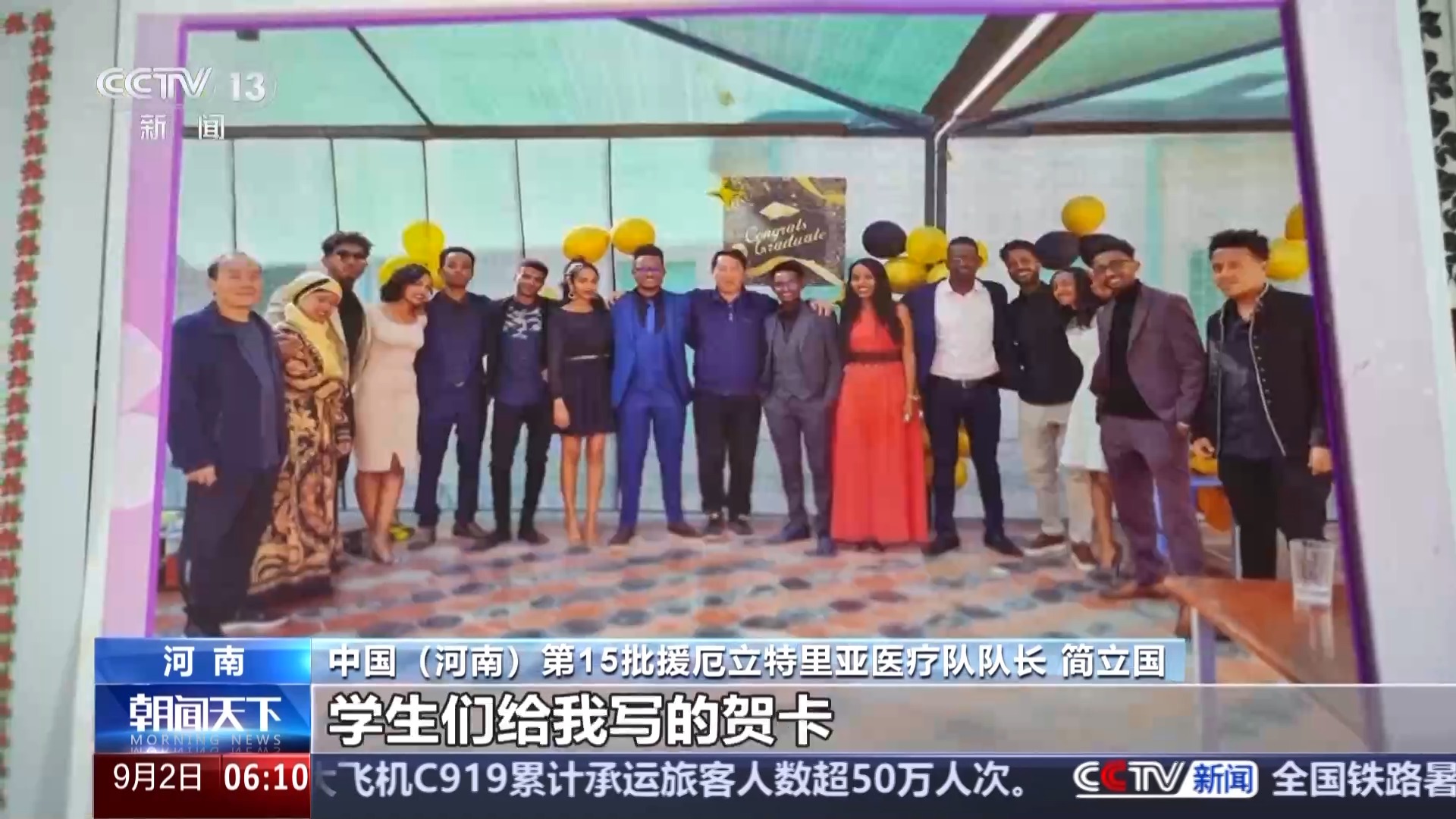 中國(guó)(河南)第15批援厄立特里亞醫(yī)療隊(duì)隊(duì)長(zhǎng) 簡(jiǎn)立國(guó):這是我們醫(yī)療隊(duì)培養(yǎng)的16名醫(yī)學(xué)生,他們現(xiàn)在都成為厄立特里亞的中堅(jiān)力量了。學(xué)生們給我寫的賀卡也是中厄友誼的見(jiàn)證。