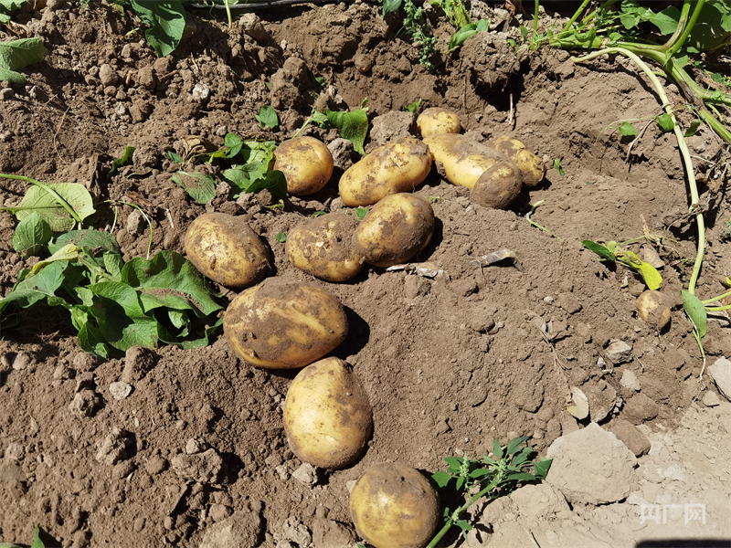 管護人員一鏟子下去,幾顆表皮光滑的馬鈴薯便破土而出(央廣網(wǎng)記者 夏莎 攝)