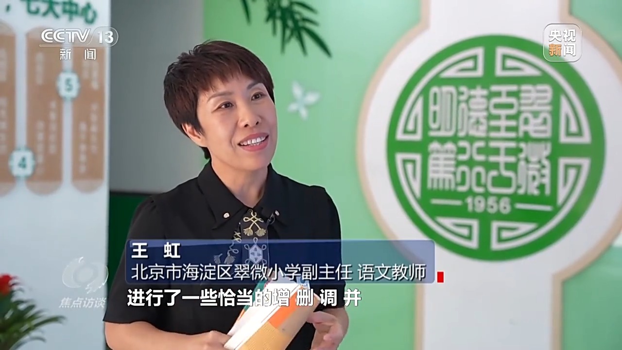 北京市海淀區(qū)翠微小學(xué)副主任、語文教師 王虹:拿到教材,我們心里特別踏實(shí),我們發(fā)現(xiàn)這個教材進(jìn)行了一些恰當(dāng)?shù)脑觥h、調(diào)、并。一年級上學(xué)期識字量上原來是300個,現(xiàn)在280個,還有一些對學(xué)生理解起來有一些難度的課文,也進(jìn)行了刪減或者調(diào)整。