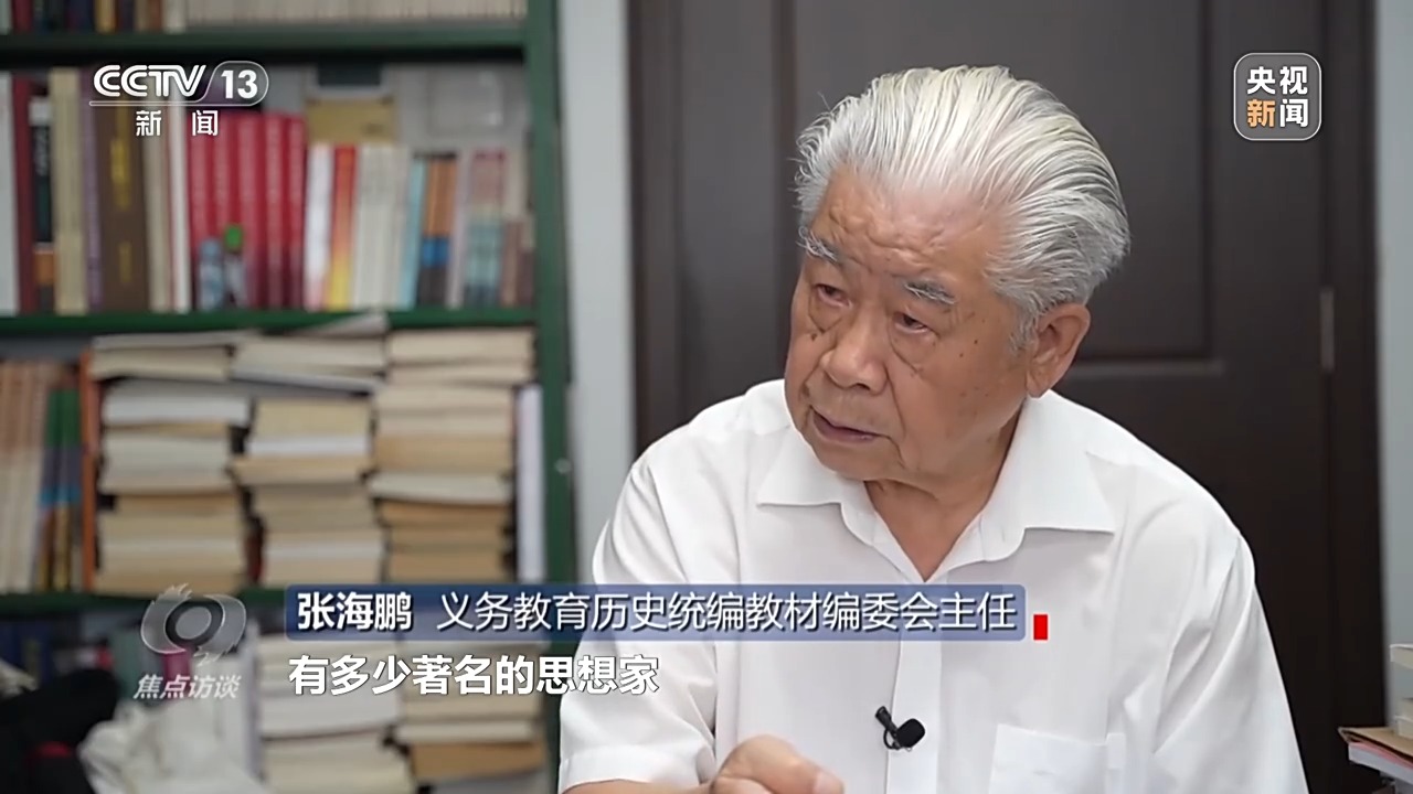 義務(wù)教育歷史統(tǒng)編教材編委會主任 張海鵬:講我們中國歷史上每一代有多少著名的思想家,有多少著名的政治家、軍事家、戰(zhàn)略家、科學(xué)家,對人類有貢獻(xiàn)的發(fā)明創(chuàng)造、文學(xué)藝術(shù)。這就是告訴我們,中華的文化是優(yōu)秀的,是值得我們熱愛的。