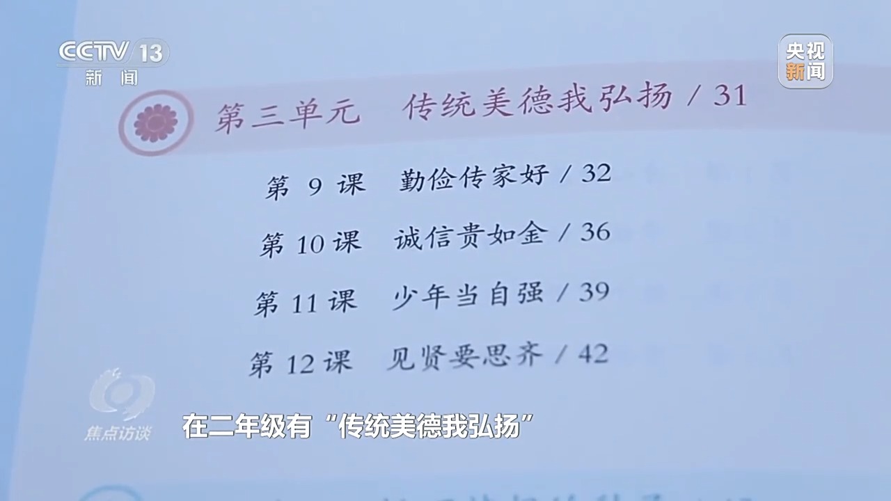 義務(wù)教育道德與法治統(tǒng)編教材編委會主任 孫蚌珠:為了讓學(xué)生循序漸進(jìn)地了解中華優(yōu)秀傳統(tǒng)文化,堅定文化自信,在二年級有“傳統(tǒng)美德我弘揚(yáng)”,四年級有“博大精深的中華優(yōu)秀傳統(tǒng)文化”,七年級有“傳承中華優(yōu)秀傳統(tǒng)文化”,這樣層層遞進(jìn)。