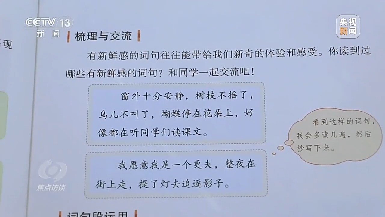 為了更好地檢驗(yàn)教材的適宜性,2023年下半年,教育部在全國范圍內(nèi)組織550多所學(xué)校、2000多名教師、10萬多名學(xué)生開展試教試用,組織500名中小學(xué)骨干教師和教研員進(jìn)行精細(xì)審讀。北京芳草地國際學(xué)校的語文教師試教了六年級下冊的第一單元。