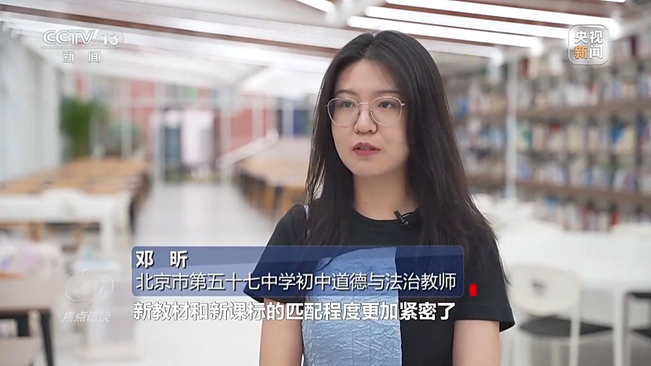 北京市第五十七中學(xué)初中道德與法治教師 鄧昕:新教材和新課標(biāo)的匹配程度更加緊密了,突出了核心素養(yǎng)里的重視實(shí)踐這個環(huán)節(jié),讓學(xué)生們從理論課堂走到社會實(shí)踐。