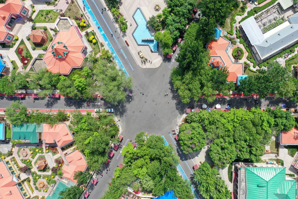 從空中俯瞰六星街,映入眼簾的是一片綠樹成蔭、紅瓦藍墻的正六邊形街巷。六星街始建于20世紀30年代,街巷內居住著漢族、維吾爾族、哈薩克族等13個民族的群眾,是新疆多民族和諧共處、多元文化交織交融的一個縮影。