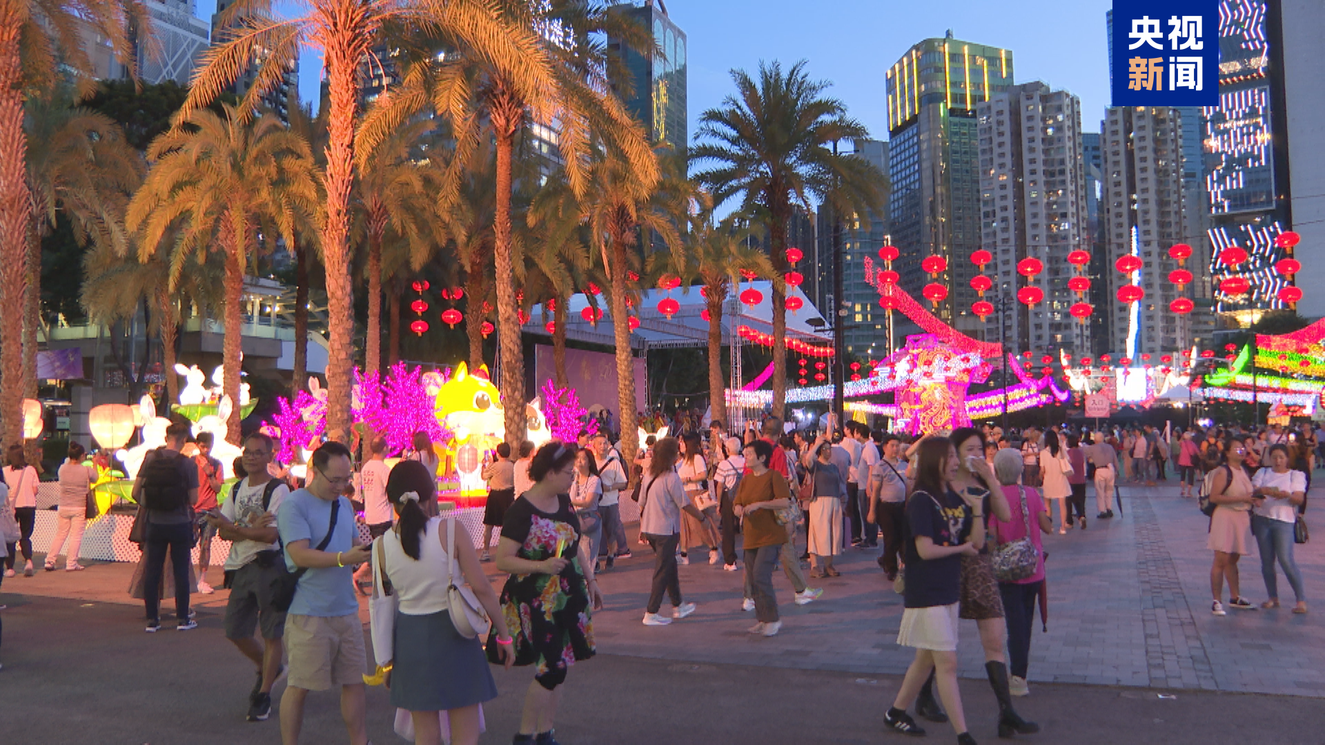 香港維多利亞公園的彩燈展以“國風(fēng) 港味”為主題,包括衣、食、住、行四個生活范疇,展示融合傳統(tǒng)與現(xiàn)代設(shè)計的璀璨彩燈,象征中華文明繁榮昌盛、歷久彌新。節(jié)日期間,香港多地舉行彩燈展等傳統(tǒng)民俗活動,五彩斑斕的燈籠、閃耀的燈光和精美的燈飾,營造出中秋佳節(jié)的喜慶氛圍。市民和游客們紛紛駐足拍照,享受這份視覺盛宴。