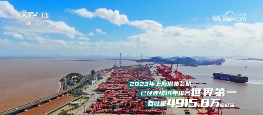 2023年,上海港集裝箱已經(jīng)連續(xù)14年排名世界第一,吞吐量4915.8萬標準箱。