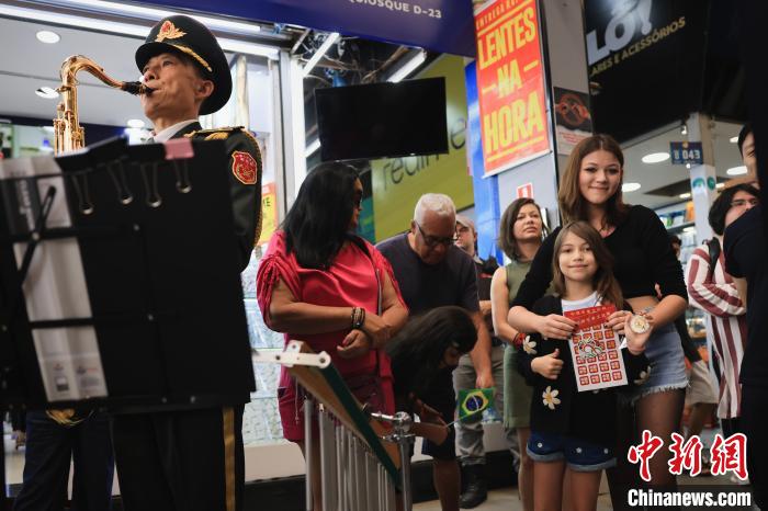 當?shù)貢r間9月21日,巴西首都巴西利亞,參加中國軍事文化周活動的中國人民解放軍軍樂團演出分隊,在巴西利亞小商品市場演出,民眾互動熱烈。琚振華 攝