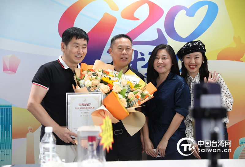 “920就愛你”海峽兩岸電商購物節(jié)組委會為鄭云先生頒發(fā)“920海峽兩岸文化交流大使”證書。(中國臺灣網記者 李育剛 攝)