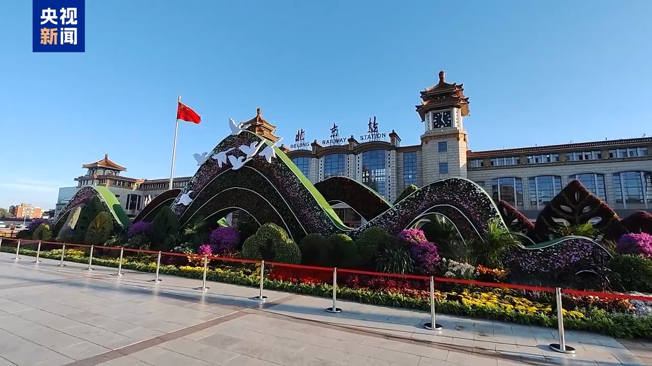 此外,在北京西站等七個站區(qū)精心布置8組迎賓主題花壇,營造進京最美第一印象。