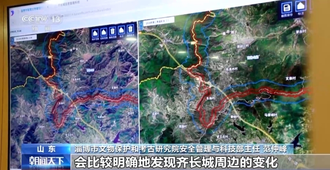 淄博市文物保護(hù)和考古研究院安全管理與科技部主任 范仲峰:有些地段山比較高,巡護(hù)員到達(dá)率可能不是太理想,尤其是在雨雪天氣,是登不到山頂?shù)?。我們充分運用了衛(wèi)星圖片對比功能,通過圖片的變化,會比較明確地發(fā)現(xiàn)齊長城周邊的變化,提高了我們巡護(hù)的視野。下一步我們可能會充分使用無人機(jī),包括一些地理信息相關(guān)的最新數(shù)據(jù),補(bǔ)充和完善我們的巡護(hù)系統(tǒng)。