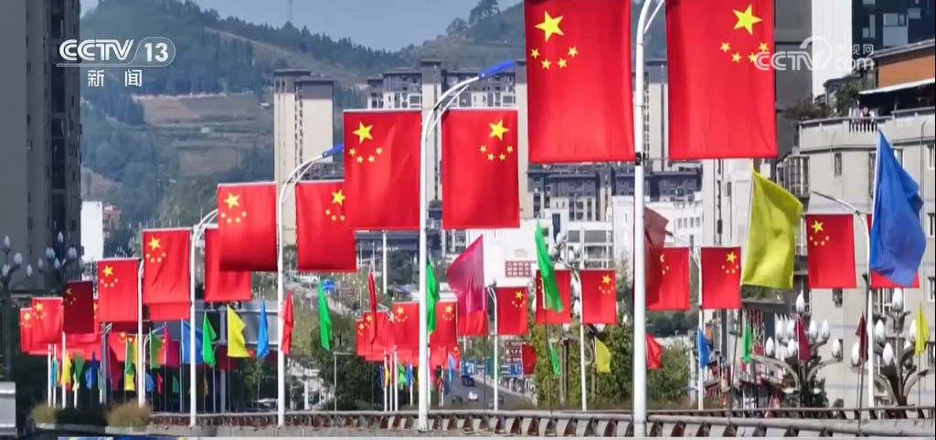 國慶臨近,全國各地裝扮一新,國旗紅、鮮花艷,洋溢著喜慶熱烈的節(jié)日氣氛。