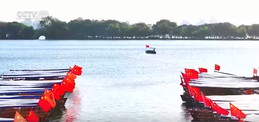 在浙江杭州,西湖上的游船掛起五星紅旗,紅旗與湖水交相輝映,構(gòu)成秋日美麗畫卷;在云南紅河,建水古城裝飾一新,古色古香的建筑在國旗映襯下別有韻味;在貴州貴陽,多處城市地標(biāo)布置了國慶主題景觀花壇;在江西南昌,國慶立體花卉造型“祝福祖國繁榮昌盛”亮相八一廣場,花卉造型由約5萬盆鮮花搭配組成,融入中國結(jié)、華表、飄帶元素,表達(dá)著人們對祖國的深深祝福;在安徽合肥,用花卉、水果打造的大型花籃象征著花團(tuán)錦簇、碩果累累,吸引市民打卡拍照。