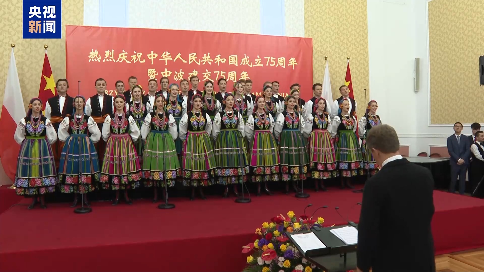 中國(guó)駐波蘭大使館舉行的國(guó)慶招待會(huì)上,波蘭政要、各國(guó)駐波使節(jié)、華僑華人代表等約600人出席。中國(guó)民樂藝術(shù)表演和留學(xué)生歌唱團(tuán)帶來(lái)豐富表演,波蘭馬佐夫舍歌舞團(tuán)也呈現(xiàn)了波蘭民族歌舞表演,特別是一首中文歌曲《半個(gè)月來(lái)爬上來(lái)》將招待會(huì)氣氛推向高潮。