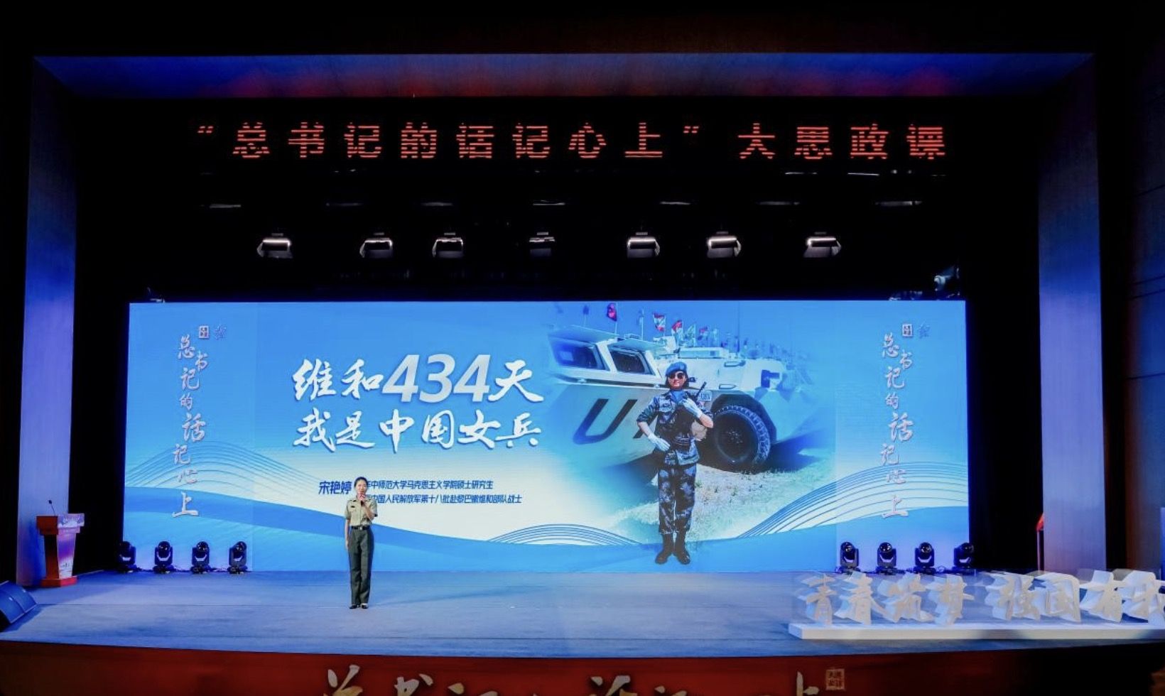 “大家好,我來自華中師范大學(xué)馬克思主義學(xué)院的宋艷婷!”9月24日,身著一身戎裝的宋艷婷身姿筆挺,在“總書記的話記心上”大思政課現(xiàn)場(chǎng),向廣大學(xué)子講述她的維和故事。一個(gè)干脆利落的敬禮,引起現(xiàn)場(chǎng)的熱烈掌聲。她曾作為第十八批赴黎巴嫩維和建筑工兵分隊(duì)隊(duì)員,在黎巴嫩執(zhí)行維和任務(wù)。