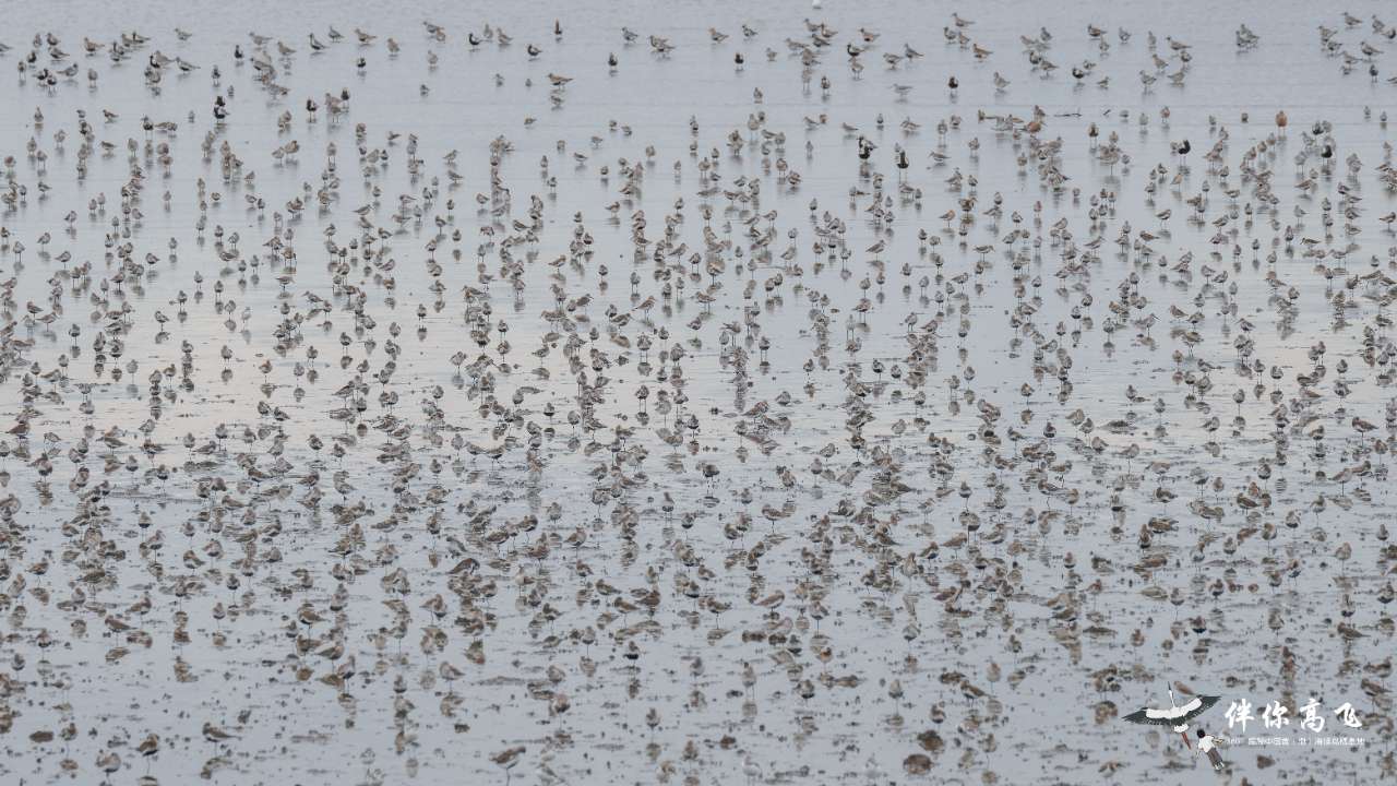 其中,丹東鴨綠江口候鳥棲息地位于東亞-澳大利西亞候鳥遷飛通道北部,提名地內(nèi)充沛的底棲動(dòng)物和各種漁業(yè)資源,每年為二十萬到四十萬只候鳥提供了關(guān)鍵的能量補(bǔ)給來源,是重要的候鳥停歇地和補(bǔ)給站之一。圖為在灘涂覓食的大批鸻鷸。(徐譚 攝/光明圖片)