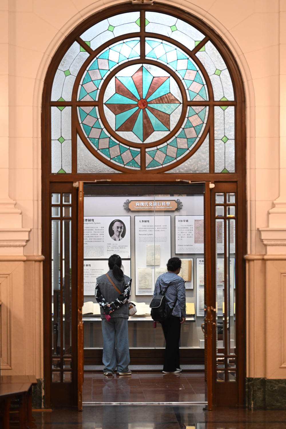 觀眾在位于天津解放北路80號(hào)的中國(guó)銀行博物館內(nèi)參觀。新華社記者 孫凡越 攝