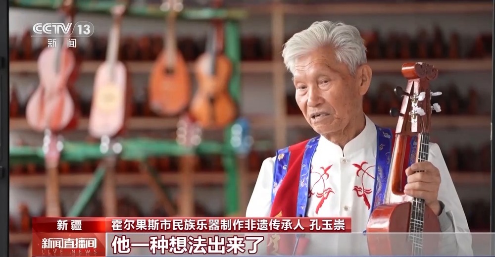 霍爾果斯市民族樂器制作非遺傳承人 孔玉崇:我現(xiàn)在的想法是,把這個(gè)樂器的質(zhì)量要提升,提升到一個(gè)很高的層次上。一定要走出去,我們的聲音傳到全世界,那是絕美的聲音。