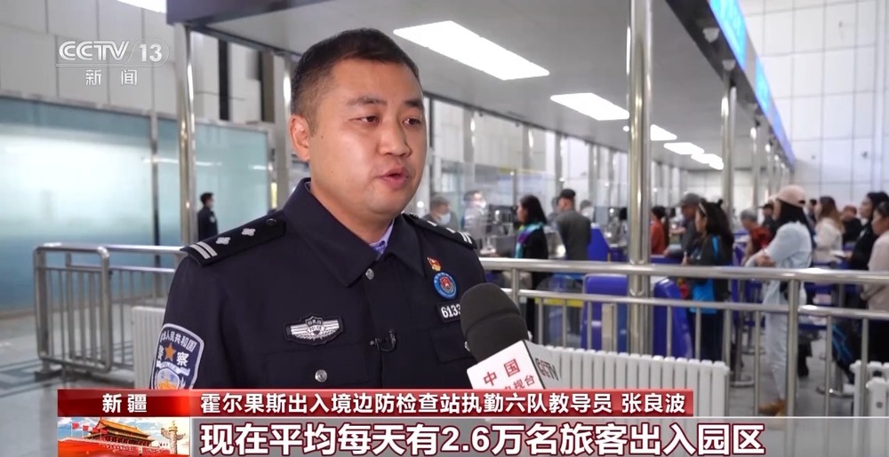 霍爾果斯出入境邊防檢查站執(zhí)勤六隊(duì)教導(dǎo)員 張良波:現(xiàn)在平均每天有2.6萬名旅客出入園區(qū),為最大限度保障旅客高效快速通關(guān),我們采取錯(cuò)時(shí)通關(guān)模式。我們也會(huì)根據(jù)旅客的流量情況,動(dòng)態(tài)調(diào)整我們的人工查驗(yàn)通道,最高可以加開到12條。