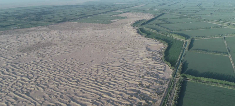 荒山寂寥鳥影絕,古道蒼茫人跡滅。七秩之前,新疆塔克拉瑪干沙漠便呈現(xiàn)此般荒涼之景,人跡罕至。沙漠邊緣的城郭,長年累月經(jīng)風(fēng)沙侵蝕,經(jīng)濟(jì)發(fā)展始終受限。新中國的誕生,為那片曾經(jīng)貧瘠荒涼的沙漠帶來了生機(jī)。一群英勇的人們,懷揣著堅定的信念,將這里取名阿拉爾(蒙古語:匯聚)展開了一場又一場浩大的防沙治沙戰(zhàn)役。從那一刻起,新疆大地上演了一幕幕令人贊嘆的生態(tài)修復(fù)傳奇,為沙漠披上了一層層的綠色紗衣。