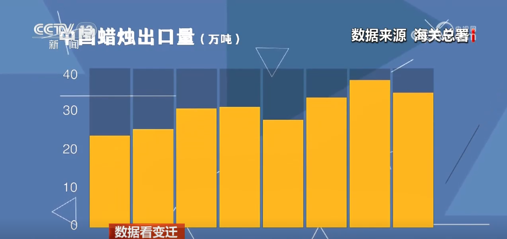 隨著電力普及,蠟燭在國內逐漸淡出人們的視線,但卻在海外大放異彩。近10年來,我國蠟燭年度出口量邁過30萬噸關口,和中國綠茶一年的出口量相當。中國蠟燭“漂洋過?!比ネ?60多個國家和地區(qū),穩(wěn)坐全球蠟燭貿易“頭把交椅”。國內蠟燭相關企業(yè)增加到約1.02萬家,近50%的企業(yè)成立于10年之內,傳統的蠟燭產品向高附加值邁進。