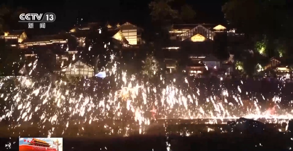 隨著夜幕降臨,非遺打鐵花、篝火狂歡派對(duì)等節(jié)目陸續(xù)開始,讓游客感受東方之美、中國(guó)之韻。10月1日到7日,烏江寨新增民族盛裝巡游、萬(wàn)人大合唱、無(wú)人機(jī)光影秀等內(nèi)容,從早到晚輪番上演,為游客們呈上一場(chǎng)文化大餐。