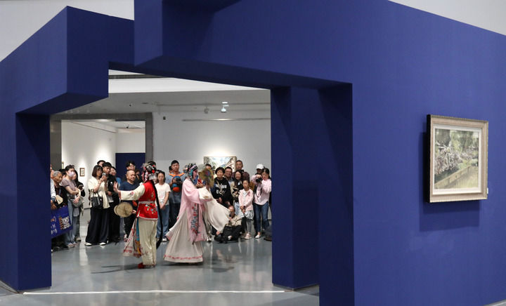 10月4日,游客在江蘇省蘇州美術(shù)館觀看昆曲《牡丹亭》。