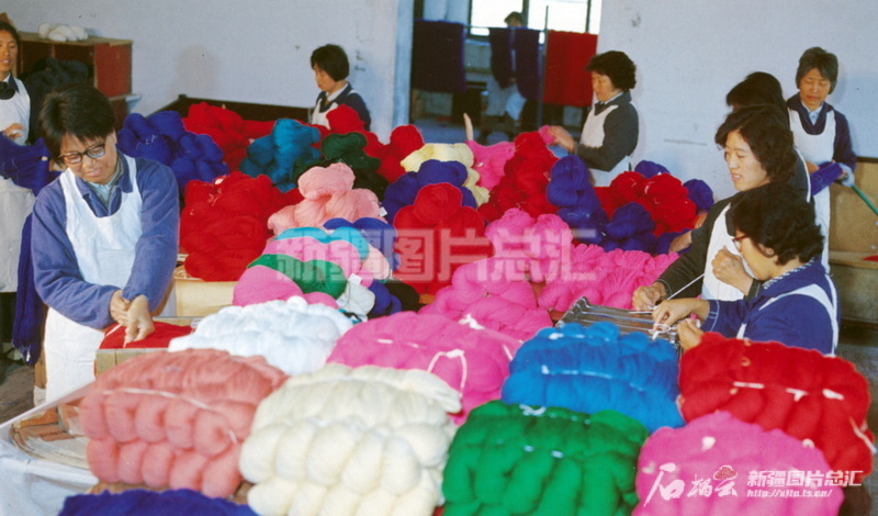 八一毛紡織廠生產(chǎn)的蜜蜂牌毛線,成為市場(chǎng)俏銷(xiāo)商品(1982年攝)。新疆圖片總匯資料圖片
