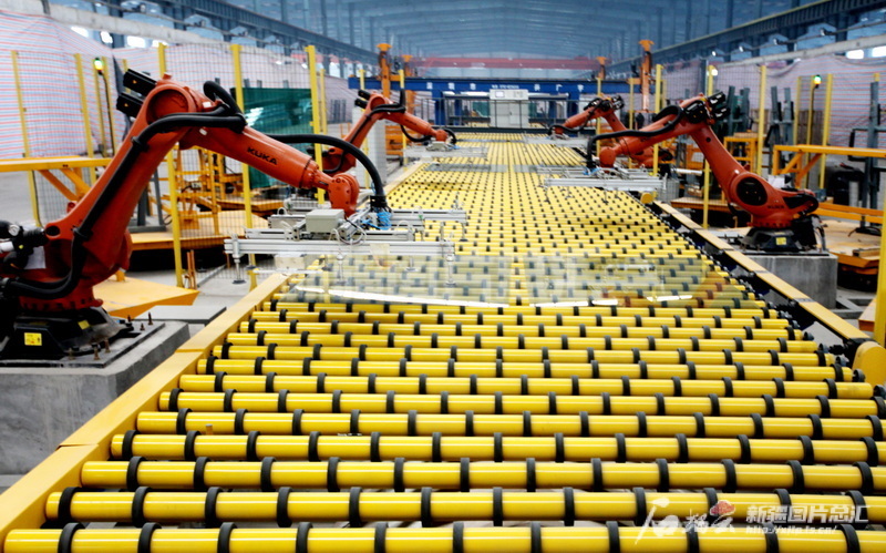 2016年8月,位于新疆生產(chǎn)建設(shè)兵團(tuán)第五師的新疆普耀新型建材有限公司生產(chǎn)車(chē)間內(nèi)景。新疆圖片總匯資料圖片