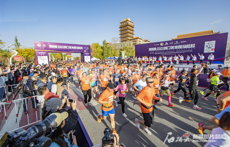 2023年10月15日,博斯騰·2023鐵門(mén)關(guān)半程馬拉松在新疆生產(chǎn)建設(shè)兵團(tuán)第二師絲路雄關(guān)景區(qū)鳴槍開(kāi)賽。李嘉成攝