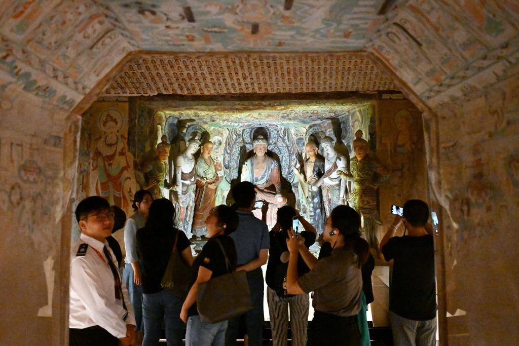 游客參觀在中華藝術(shù)宮(上海美術(shù)館)舉辦的“何以敦煌”藝術(shù)展。新華社發(fā)(陳浩明攝)