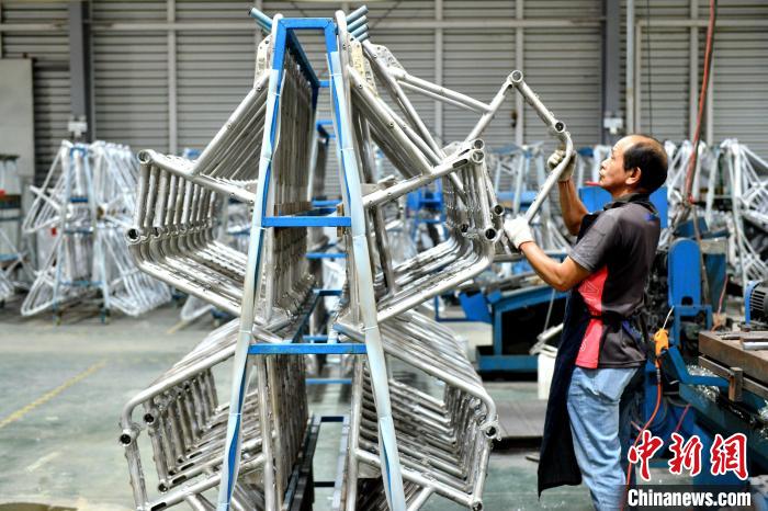 舊鎮(zhèn)工業(yè)園聚集著不少?gòu)纳钲诎徇w而來(lái)的臺(tái)企,主要生產(chǎn)自行車車架、腳踏板、車鎖、鈴鐺,鋁管等,形成較為完整的自行車產(chǎn)業(yè)鏈。中新網(wǎng)記者呂明 攝
