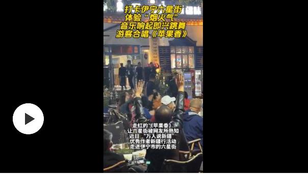 六星街的“蘋(píng)果香”餐廳更是成為眾多游客的打卡點(diǎn),他們?cè)谄穱L新疆美食的同時(shí),也跟著齊聲合唱被稱(chēng)為“六星街成名曲”的《蘋(píng)果香》。