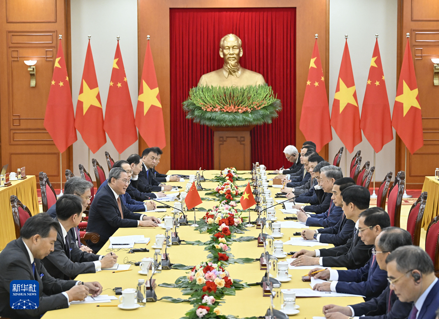 李強(qiáng)首先轉(zhuǎn)達(dá)習(xí)近平總書記、國(guó)家主席對(duì)蘇林總書記、國(guó)家主席的親切問(wèn)候。李強(qiáng)表示,今年8月,兩黨兩國(guó)最高領(lǐng)導(dǎo)人在北京舉行會(huì)晤,就推進(jìn)中越命運(yùn)共同體建設(shè)作出戰(zhàn)略擘畫,為兩國(guó)關(guān)系發(fā)展指明了方向。中方愿同越方一道落實(shí)兩黨兩國(guó)最高領(lǐng)導(dǎo)人重要共識(shí),賡續(xù)傳統(tǒng)友誼,密切高層交往,加強(qiáng)戰(zhàn)略溝通,緊密團(tuán)結(jié)協(xié)作,堅(jiān)定推進(jìn)構(gòu)建具有戰(zhàn)略意義的中越命運(yùn)共同體。