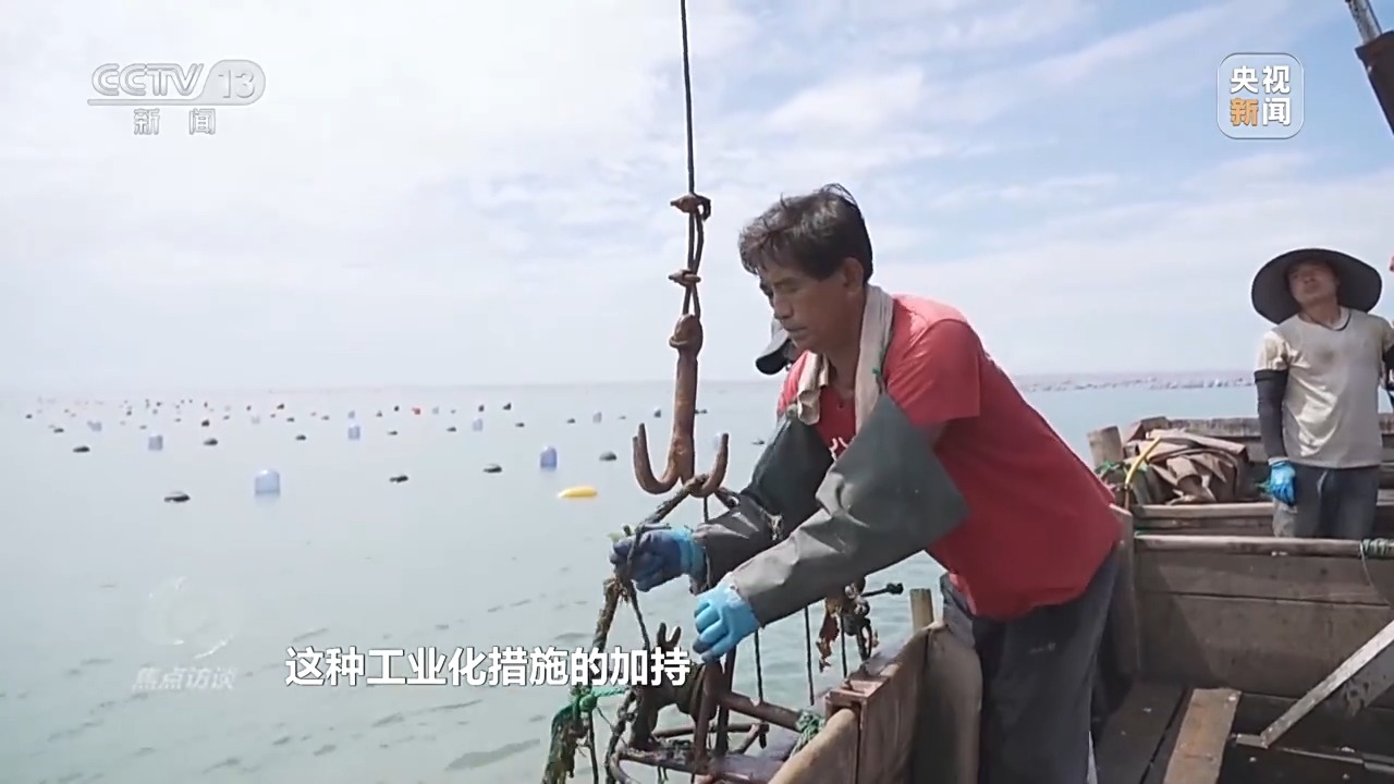 中國科學(xué)院海洋研究所研究員 張國范:“比如容量的控制,包括溯源技術(shù)、凈化等工業(yè)化措施的加持。我們過去主要在黃海渤海進(jìn)行養(yǎng)殖,現(xiàn)在擴(kuò)展到福建東海以及廣東、廣西、海南南海,每年養(yǎng)殖面積達(dá)到100萬畝,產(chǎn)量100萬噸,產(chǎn)值100個億。”