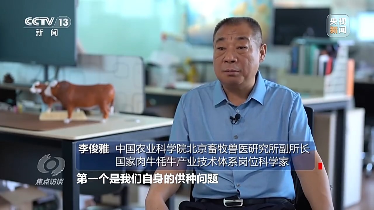 中國農(nóng)業(yè)科學(xué)院北京畜牧獸醫(yī)研究所副所長、國家肉牛牦牛產(chǎn)業(yè)技術(shù)體系崗位科學(xué)家 李俊雅:“核心種源依然依靠進(jìn)口,存在很多問題,一是我們自身的供種問題,在特殊時期,如果我們不能從國外進(jìn)口相應(yīng)的優(yōu)秀種質(zhì),我該怎么做;另外,我們引的這些國外的品種基本上都不是本品種的最優(yōu)秀種?;蛘叻N牛的凍精。我們必須要培育出滿足我們國家主流市場供給型的品種。