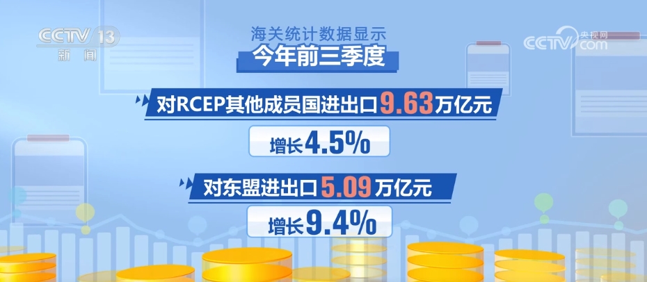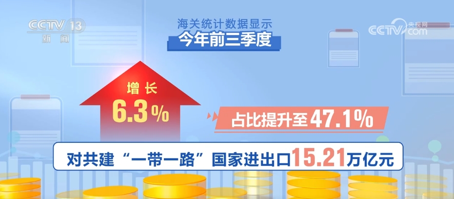 海關(guān)統(tǒng)計(jì)數(shù)據(jù)顯示,今年前三季度,我國市場多元化穩(wěn)步推進(jìn),與全球160多個國家和地區(qū)貿(mào)易實(shí)現(xiàn)增長。對共建“一帶一路”國家進(jìn)出口15.21萬億元,同比增長6.3%,占比提升至47.1%。對RCEP其他成員國進(jìn)出口9.63萬億元,增長4.5%,其中對東盟進(jìn)出口5.09萬億元,增長9.4%。同期,對歐盟、美國分別進(jìn)出口4.18萬億和3.59萬億元,分別增長0.9%、4.2%。