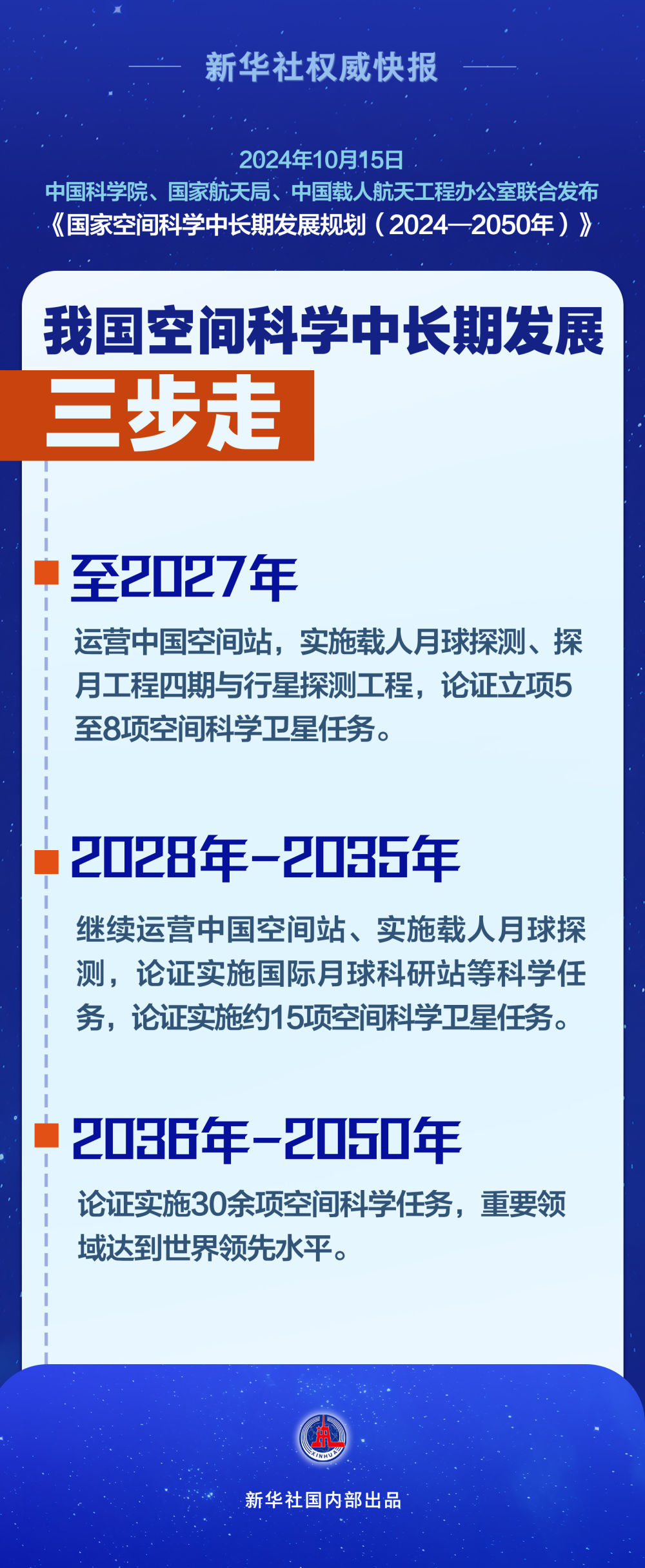 中國科學院、國家航天局、中國載人航天工程辦公室10月15日聯(lián)合發(fā)布《國家空間科學中長期發(fā)展規(guī)劃(2024—2050年)》。