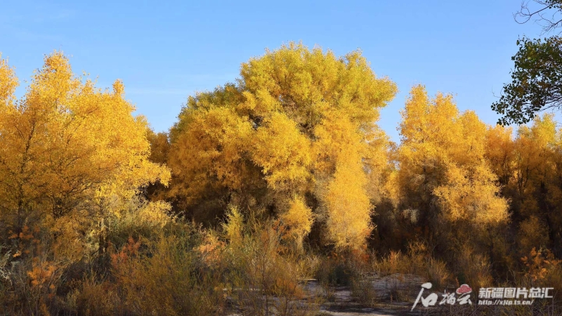 金秋十月,新疆各地胡楊林逐漸金黃一片,在藍天的映襯下,呈現(xiàn)出油畫般濃烈的色彩?!氨淘铺?,黃葉地,秋色連波”的秋日限定視覺盛宴已開啟,各地紛紛推出豐富多樣的活動,胡楊樹下的音樂會、胡楊林間的騎行、徒步比賽、美食活動、農(nóng)民畫展、服裝秀……吸引疆內(nèi)外游客共赴胡楊之約。